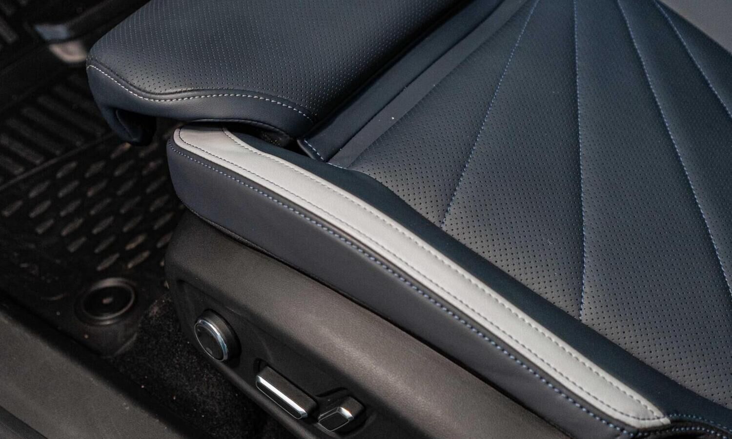• Отделка интерьера и сидений тёмно-серой экокожей со светлыми вставками